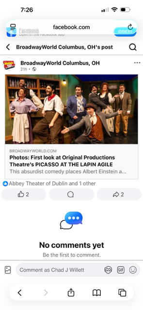 Congratulations to our very own instructor, Jeff White, for being in the play "Picasso at the Lapin Agile" premiering at the Abbey Theatre in Dublin, Ohio. We love seeing our instructors on stage!