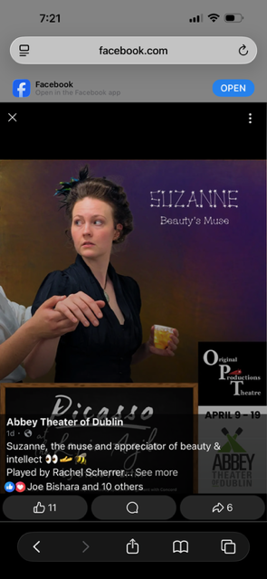 Congratulations to our very own instructor, Rachel Scherrer, for being in the play "Picasso at the Lapin Agile" premiering at the Abbey Theatre in Dublin, Ohio. We love seeing our instructors on stage!