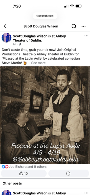 Congratulations to our very own instructor, Scott Douglas Wilson, for starring in the play "Picasso at the Lapin Agile" premiering at the Abbey Theatre in Dublin, Ohio. We love seeing our instructors on stage!