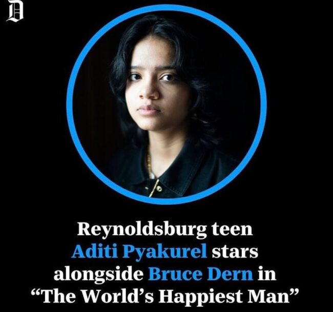 Aditi Pyakurel March 18, 2024March 18, 2024 by Chad Willett Aditi Pyakurel The World's Happiest Man - 2024 Congratulations to Aditi Pyakurel on her role in the featured film “The World’s Happiest Man.” What an amazing accomplishment. Broadway2LA is beyond proud and thrilled to see her news on The Columbus Dispatch!